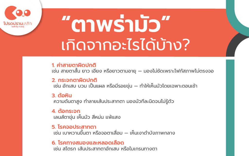 หากคุณเริ่มรู้สึกว่ามองภาพไม่ชัด หรือมีอาการตาพร่ามัวเป็นระยะ อย่ารอให้สายเกินไป — ควรเข้ารับการตรวจสุขภาพตากับจักษุแพทย์ทันที เพื่อหาสาเหตุและแนวทางดูแลที่เหมาะสมกับดวงตาของคุณค่ะ